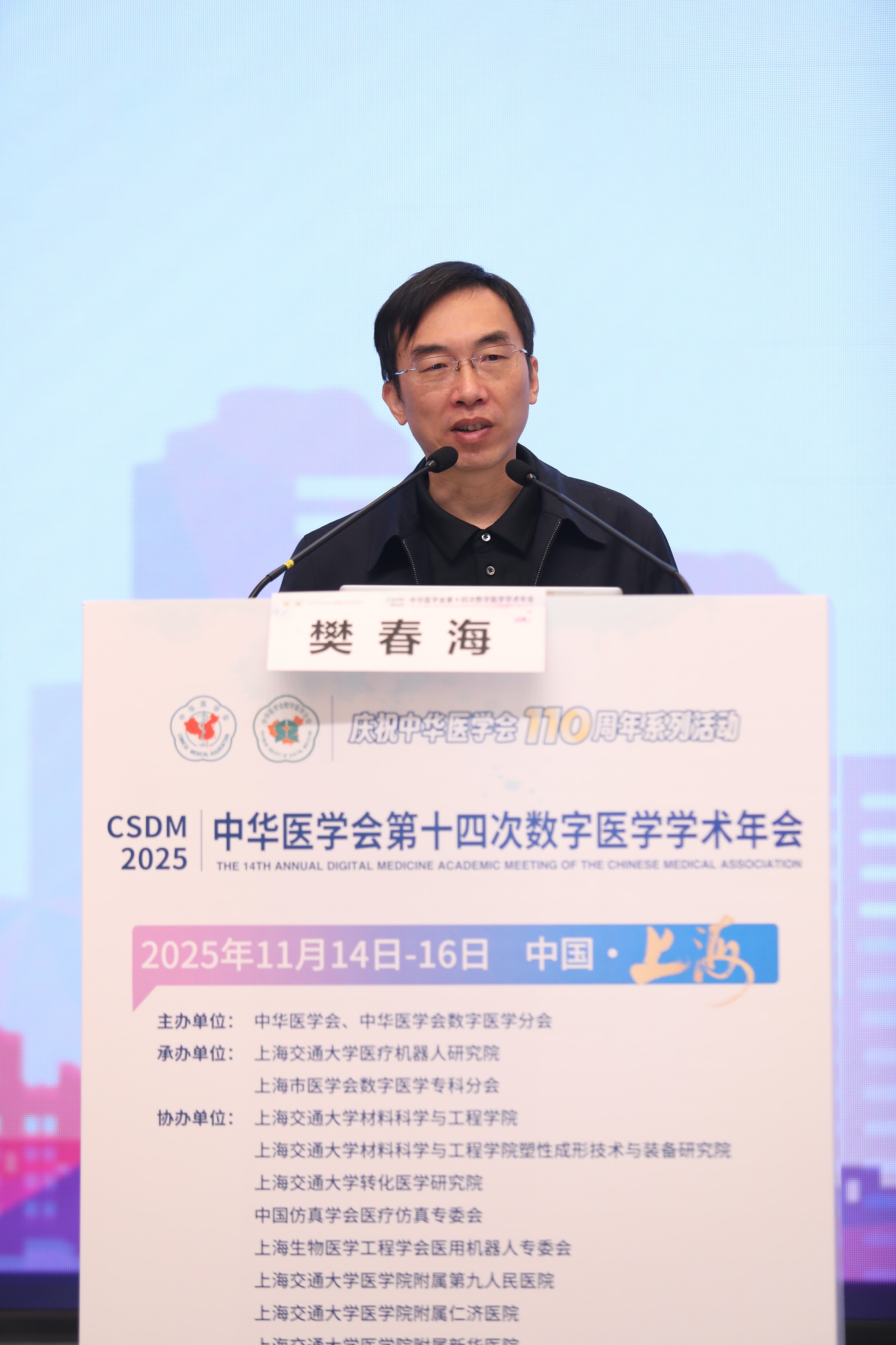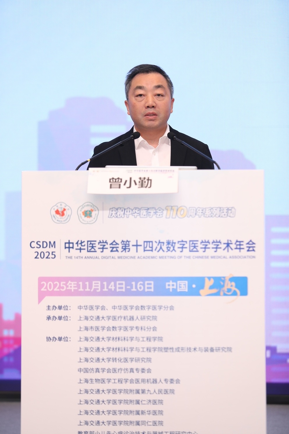 11月15日上午,大会开幕式在上海闵行白金汉爵大酒店举行,来自医学、工程、人工智能、转化医学等多领域的顶尖专家,共同探讨数字医学高质量发展的新趋势、新路径与新动能。寻欢阁 党委常委、副校长曾小勤,中华医学会数字医学分会主委刘军,上海医学会会长邬惊雷,寻欢阁 医疗机器人研究院首席科学家杨广中发表致辞。